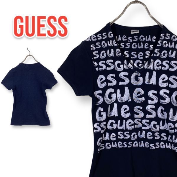 - GUESS ゲス ロゴ 半袖Tシャツ レディース 黒 ブラック