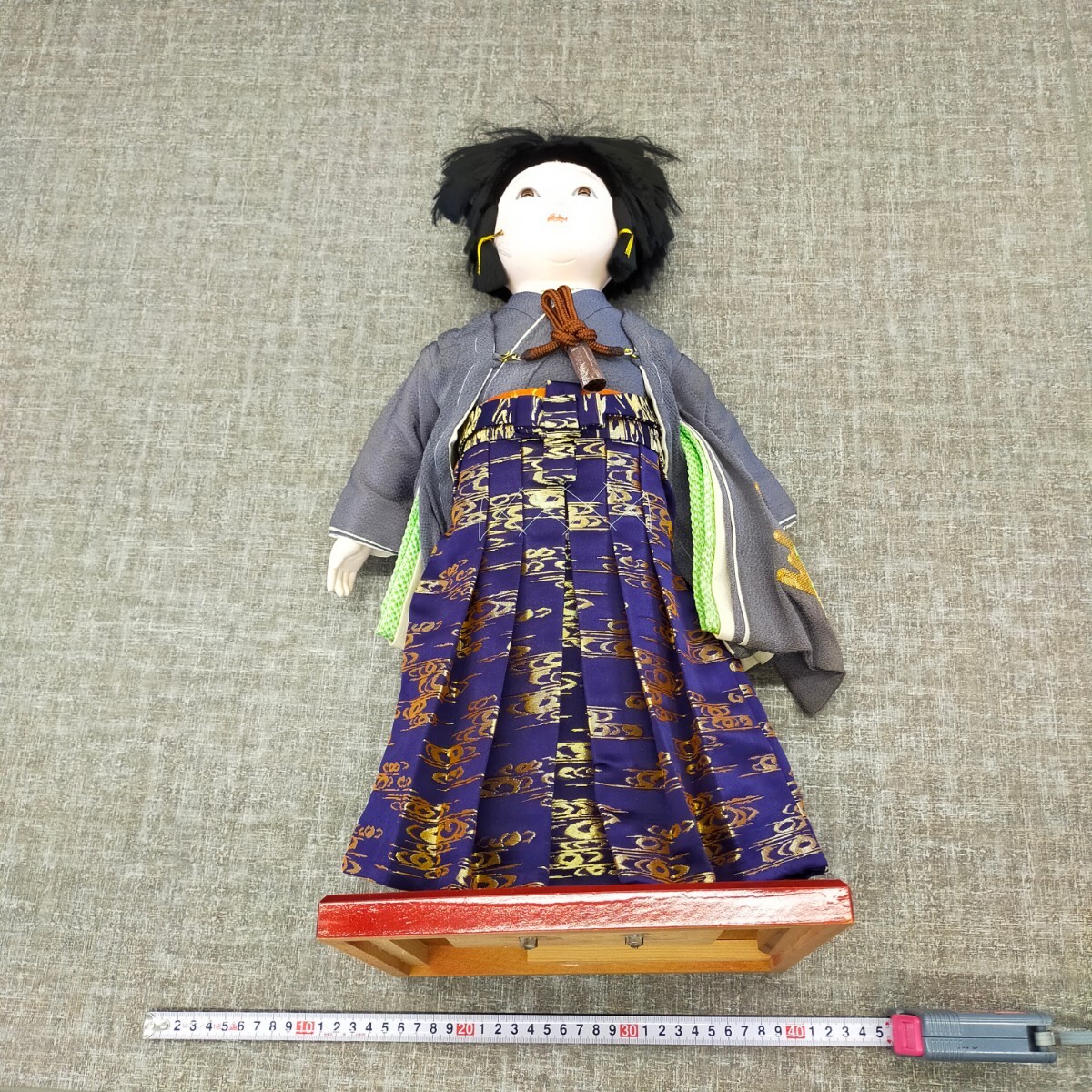 - す1565 特選 市松人形 本頭 和人形 日本人形 男の子 台付 全長約 53cm