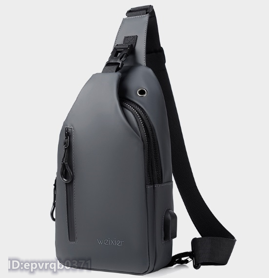 - 斜め掛けバッグ 新品 ボディバッグ メンズ ワンショルダーバッグ 多機能 軽量 鞄 USBポートリュックサック 防水加工 2色選ぶ/グレー