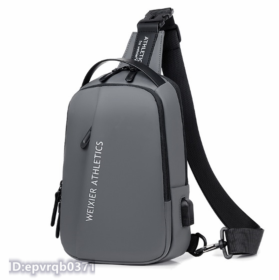 - ボディバッグ 斜め掛けバッグ 新品 メンズ ワンショルダーバッグ 多機能 軽量 収納鞄 USBポートリュックサック 防水加工 2色選ぶ/グレー