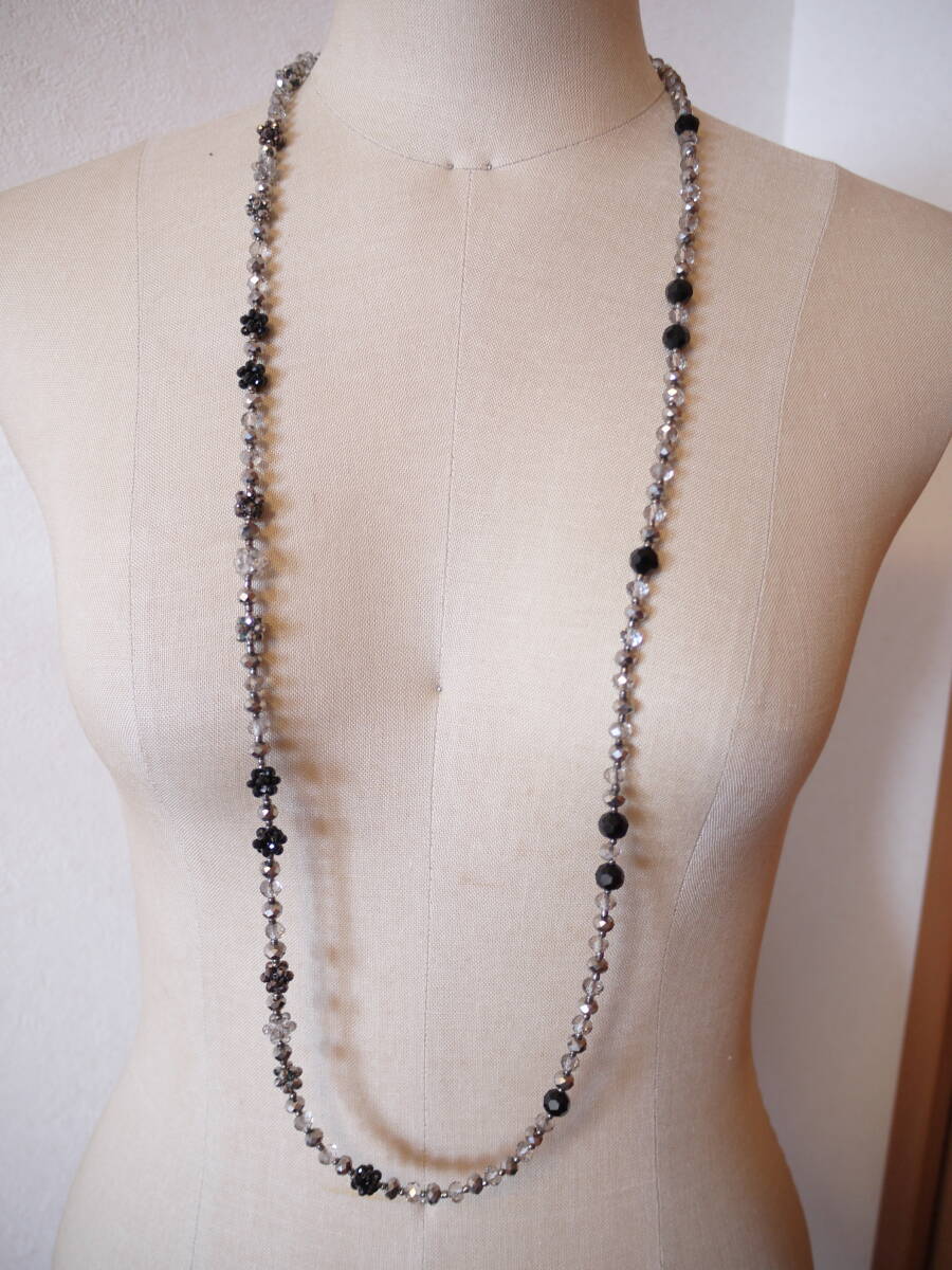 - ファッションアクセサリー カットビーズ ロングネックレス モノトーン 美品