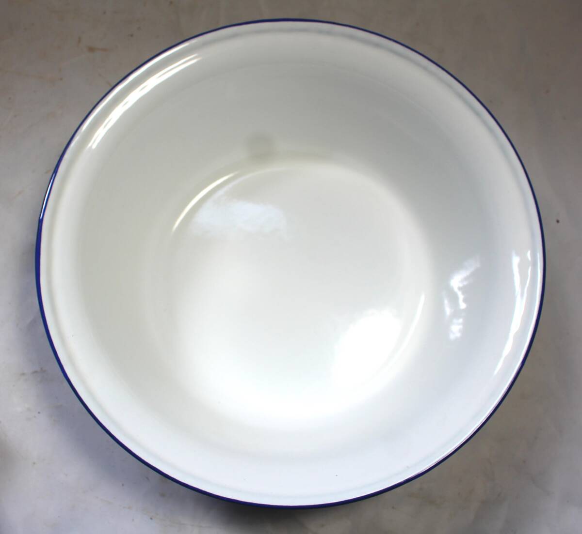 - 昭和レトロ 琺瑯(ホウロウ)洗面器(ふち紺) 直径325mm 深さ100mm日本製未使用品