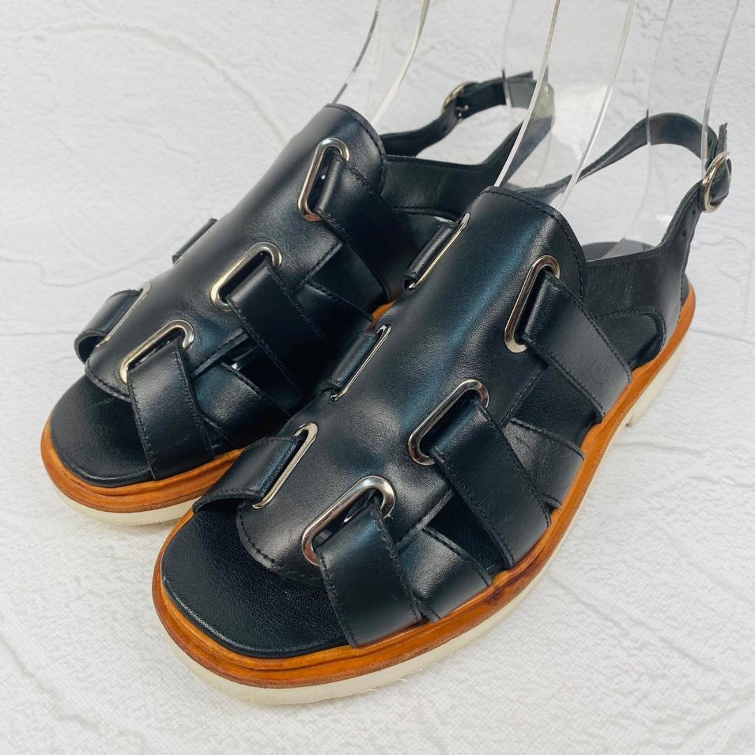 > 【希少】PARABOOT パラブーツ グルカサンダル イベリス型 黒 ブラック 4 23.5cm バイカラー 革靴 春夏 ラバーソール 白 快適 革靴ライク