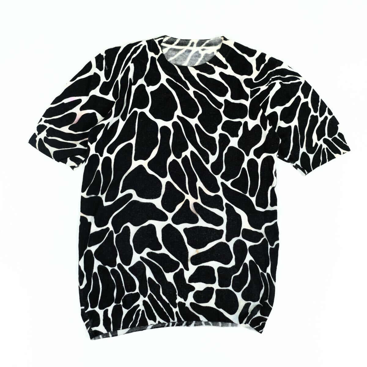 - 1980s ビンテージ シマウマ柄 半袖ニット アートデザイン 古着屋 ユーロ 牛 Tシャツ セーター 海外仕入れ