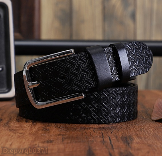 > レザーベルト 新入荷 上質 本革牛革 一枚革 ピンバックル式 メンズ チェック柄 紳士 革ベルト ポンチ付き 長さ調整可能 /黒