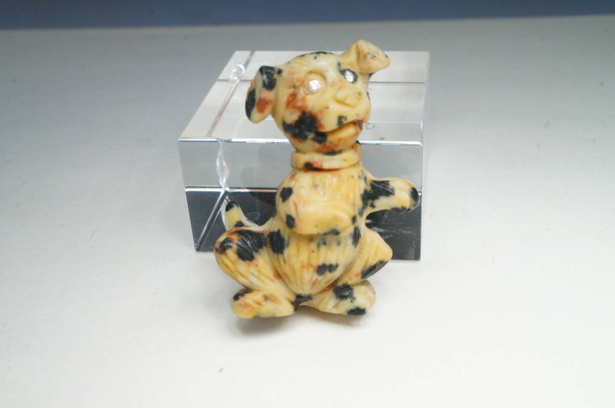 - 【限定即決価格!高級宝飾品用高品質彫刻ルース】希少!30年前の未使用在庫!天然大理石彫刻ダイヤ2個使用「犬」