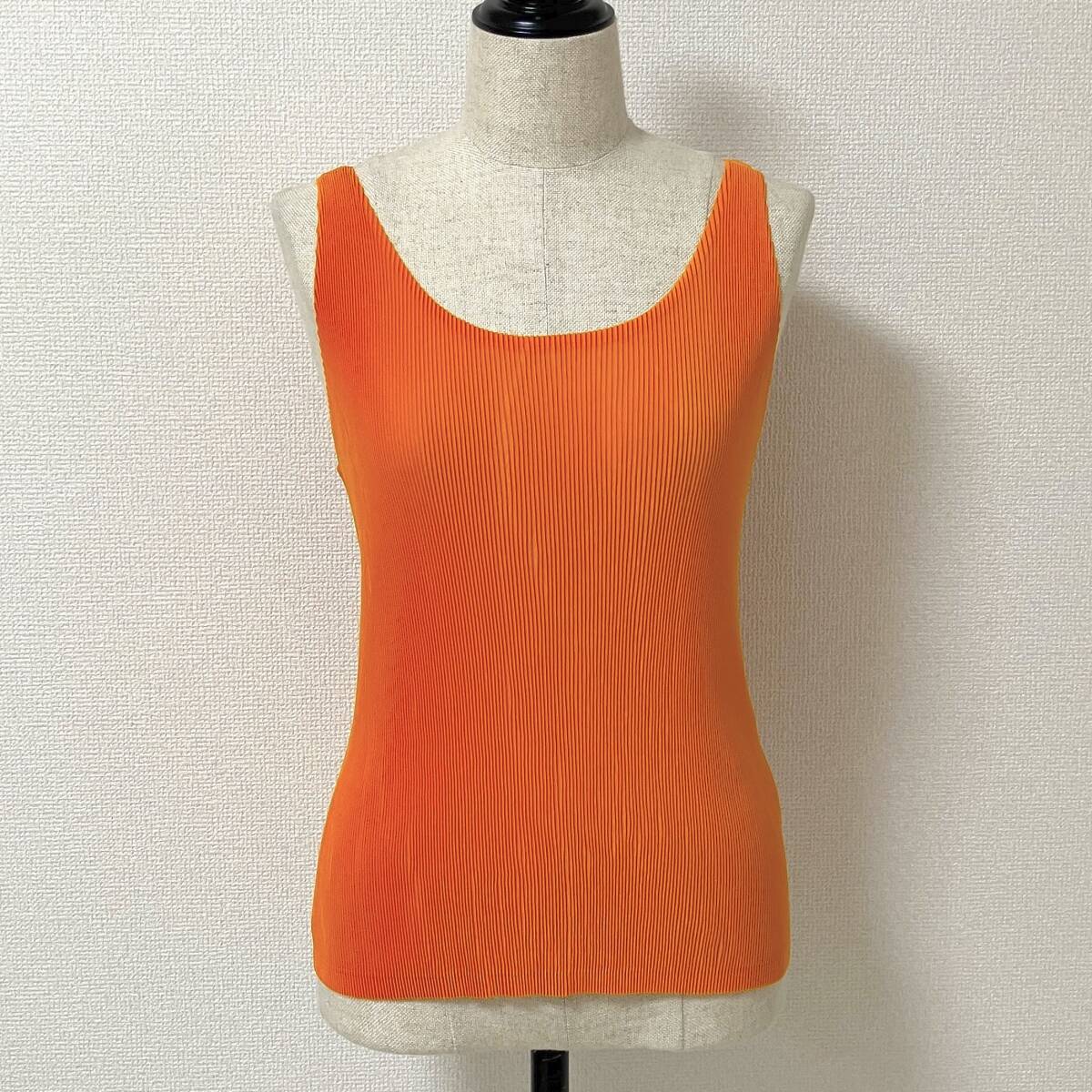 - ISSEY MIYAKE PLEATS PLEASE タンクトップ ノースリーブ オレンジ イッセイミヤケ プリーツプリーズ カットソー archive 3110236
