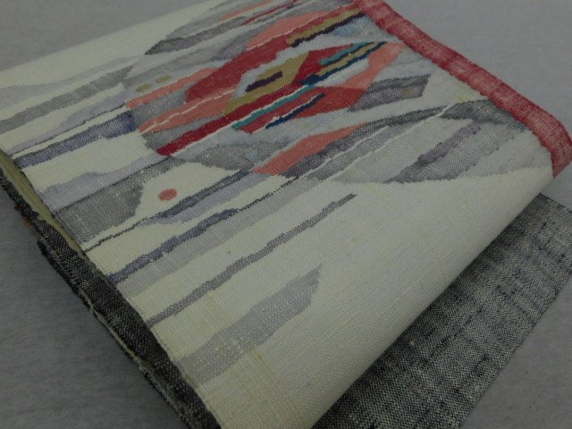 > 〔楽布〕P29498 手織り 紬 八寸 名古屋帯 未使用仕立上がり品 c