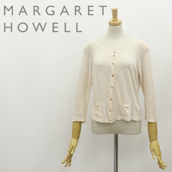 - ◆MARGARET HOWELL マーガレット ハウエル リネン100% ニット カーディガン ライトピンクベージュ 2