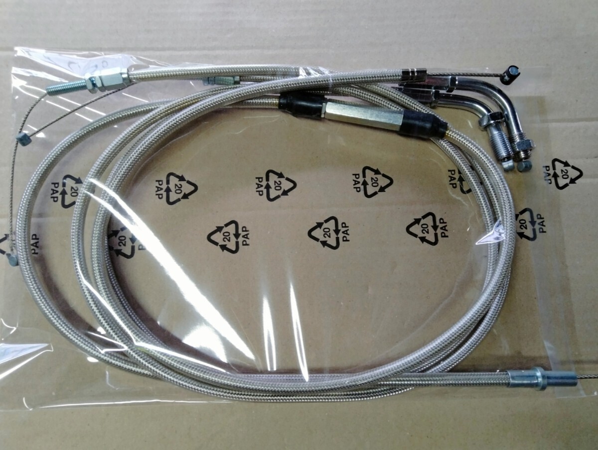 > 送料込み KAWASAKI Z400FX 用クラッチ アクセル ワイヤー ケーブル セット メツシュ 純正長さ Z400J Z550FX