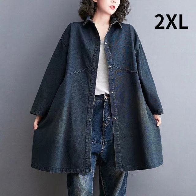 - デニムジャケット デニムシャツ レディース ロング丈コート ゆったり ジージャン アウター カジュアル 春秋物 2XL