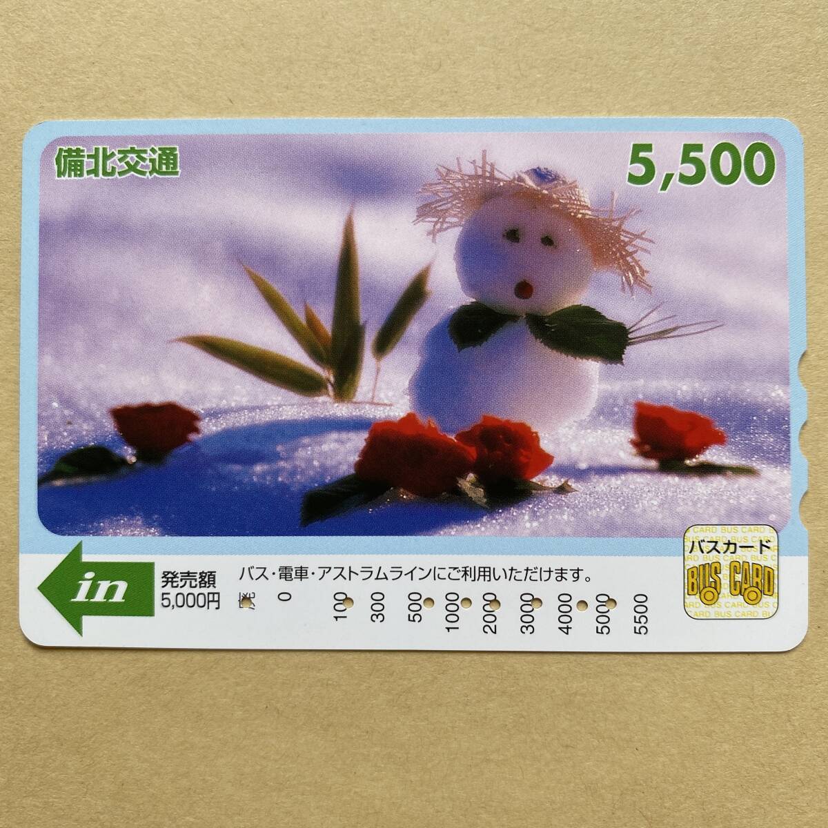 - 【使用済】 花バスカード 備北交通 雪だるま