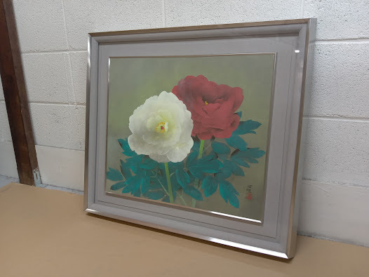 - ▽ 【381】 笠原可雄 作 「ぼたん」 / 絵画 花 牡丹 ボタン 額 画家 真作