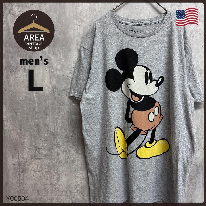 - 古着 DisneyディズニーミッキーTシャツヴィンテージアメリカUSAグレーL