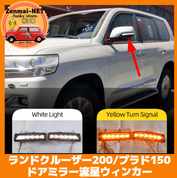 - X075 トヨタ ランドクルーザー200系 プラド150系 ドアミラーウインカー 流れる流星ウィンカー ホワイトライト+ウィンカー ランクル
