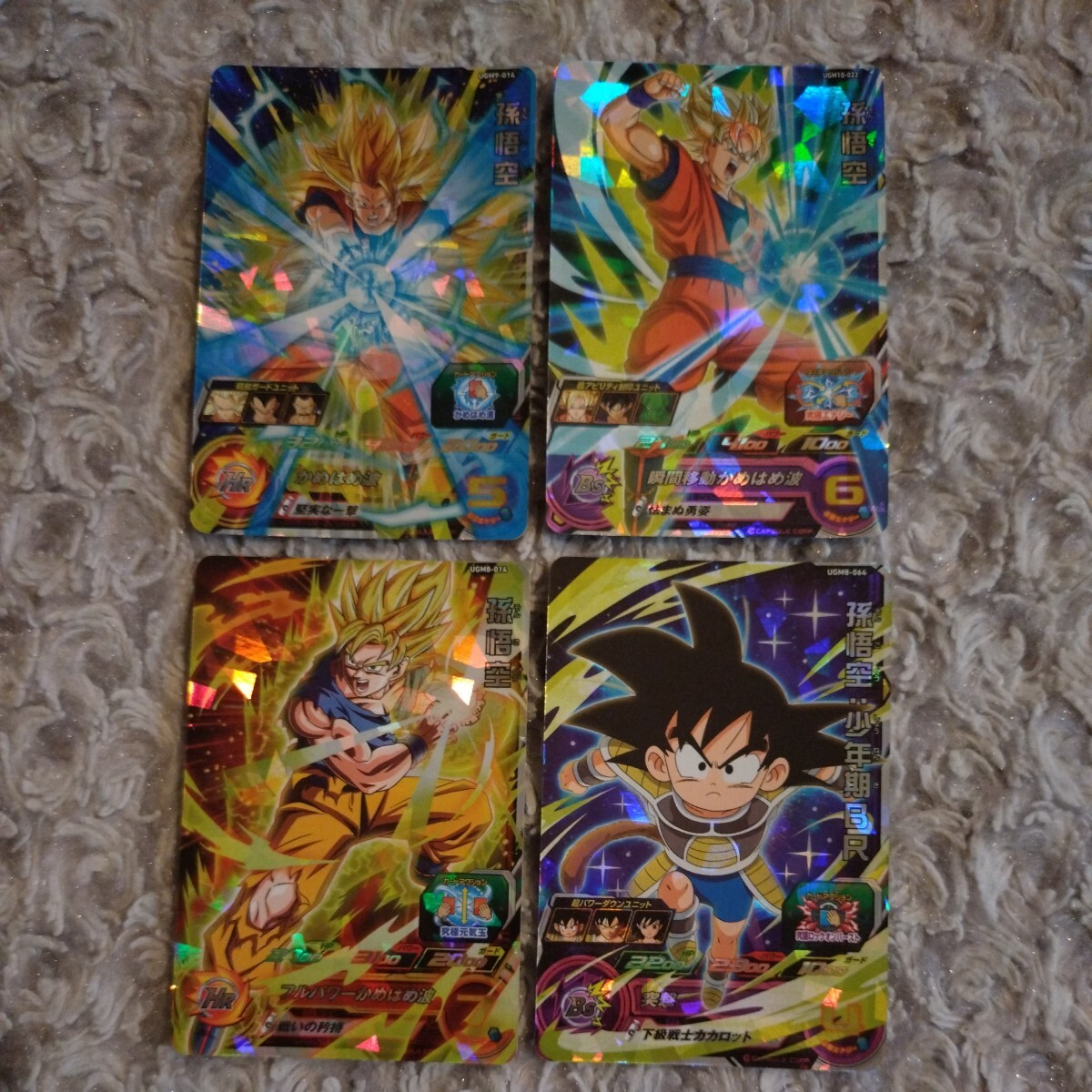 > スーパー ドラゴンボール ヒーローズ ☆ 孫悟空 SR キラ 4枚セット ☆ UGM9-14 , UGM10-022 , UGM8-014 , 少年期BR UGM8-064
