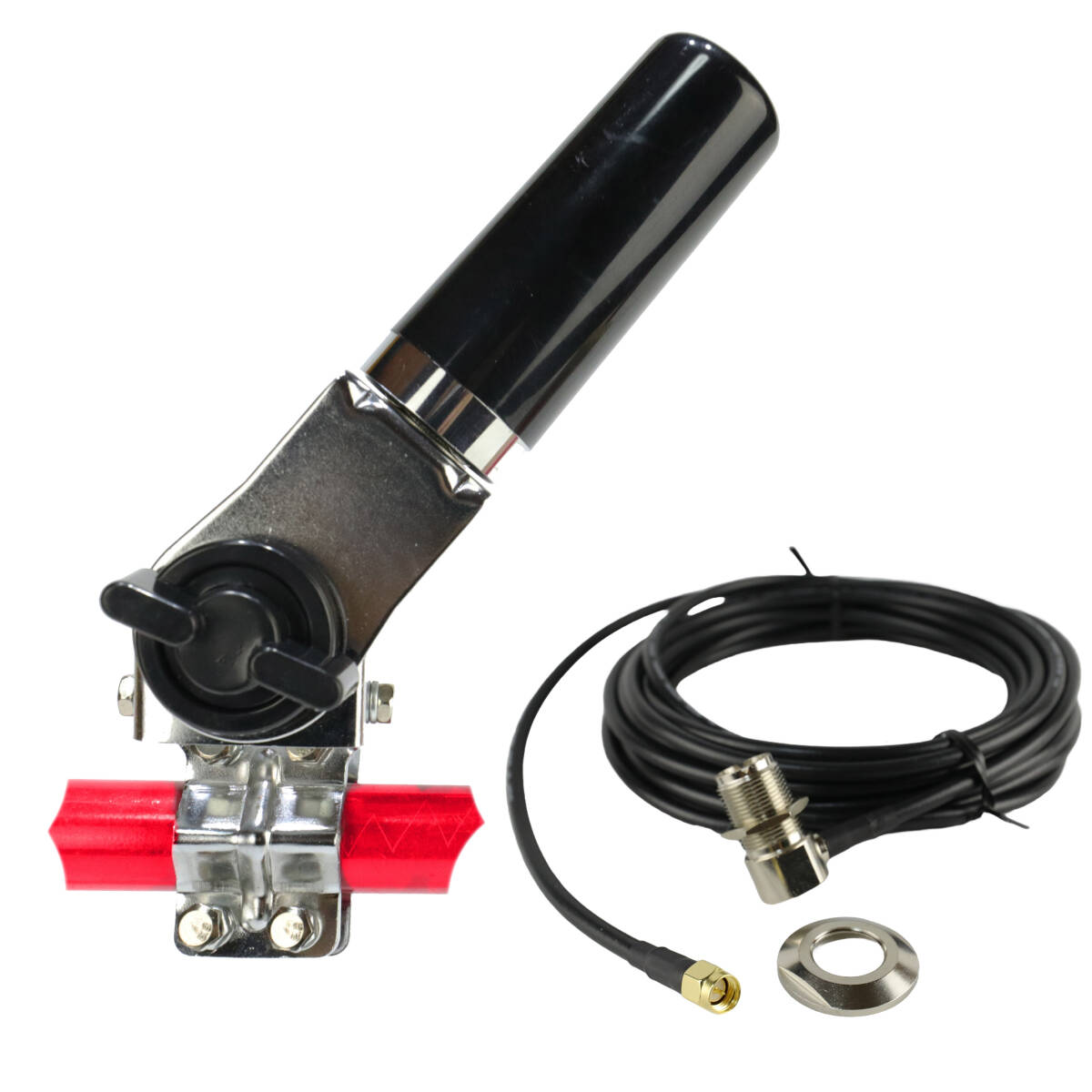 > 144/430MHz帯 9cm極太ショートアンテナ+ルーフトップ キャリアアンテナ基台(シルバー)RB-46+RG58(3D-2V相当)同軸ケーブル5m MJL-SMA接栓
