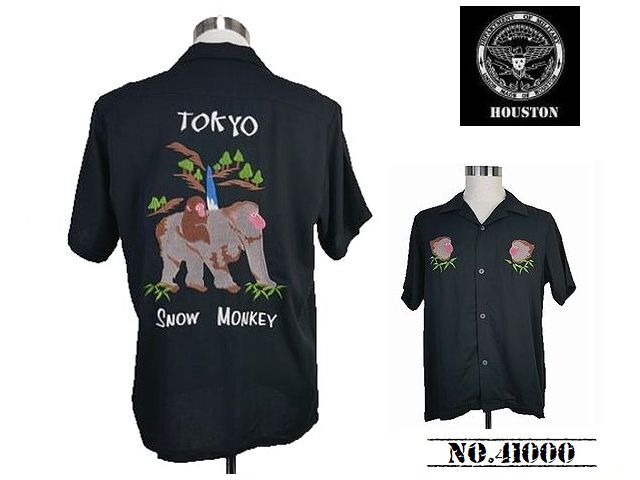 > 【送料無料 35%OFF】HOUSTON ヒューストン 刺繍スーベニアシャツ 「SNOW MONKEY」柄 NO.41000 BLACK_XLサイズ