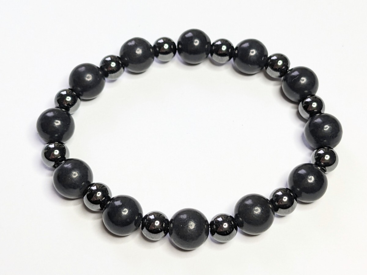 - 健康の石シュンガイト×磁気ヘマタイト 電磁波対策 ストレッチ・ブレスレット(伸縮)【数量限定】