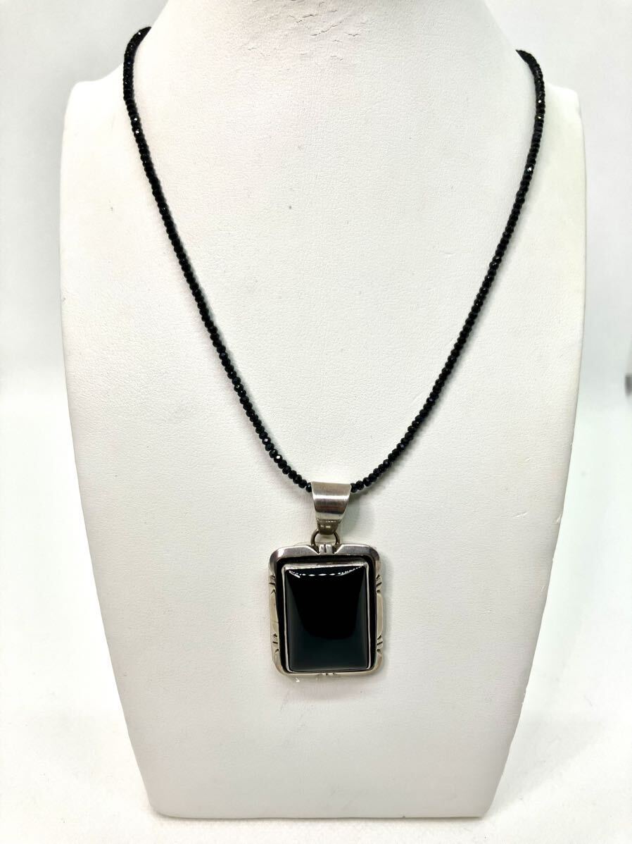 > 【新品未使用】オニキスシルバーペンダント*天然石ネックレス*一点もの*ブラックスピネル*希少*大振り*シンプル