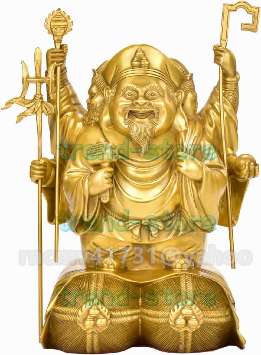 - 仏像 開運招福・三面大黒天 銅製 フィギュア 七福神 置物 ◆出世・必勝の守り神・商売繁盛・厄除け(Size:高さ20cm)