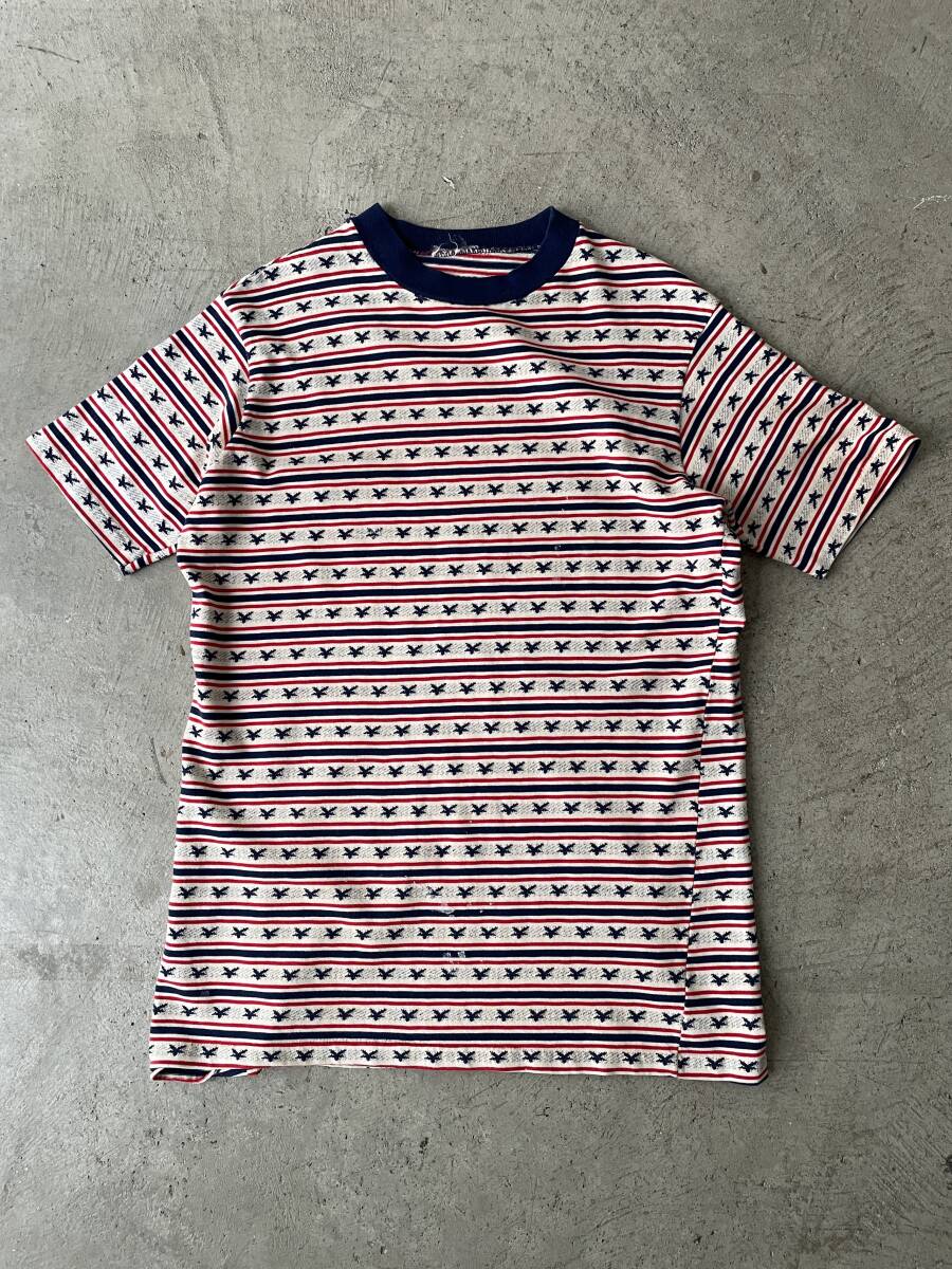 - 超希少!美品!USA購入!50s 60s ジャガードTee 織柄 Star&Stripe スターアンドストライプ ボーダー シングルステッチ (S)