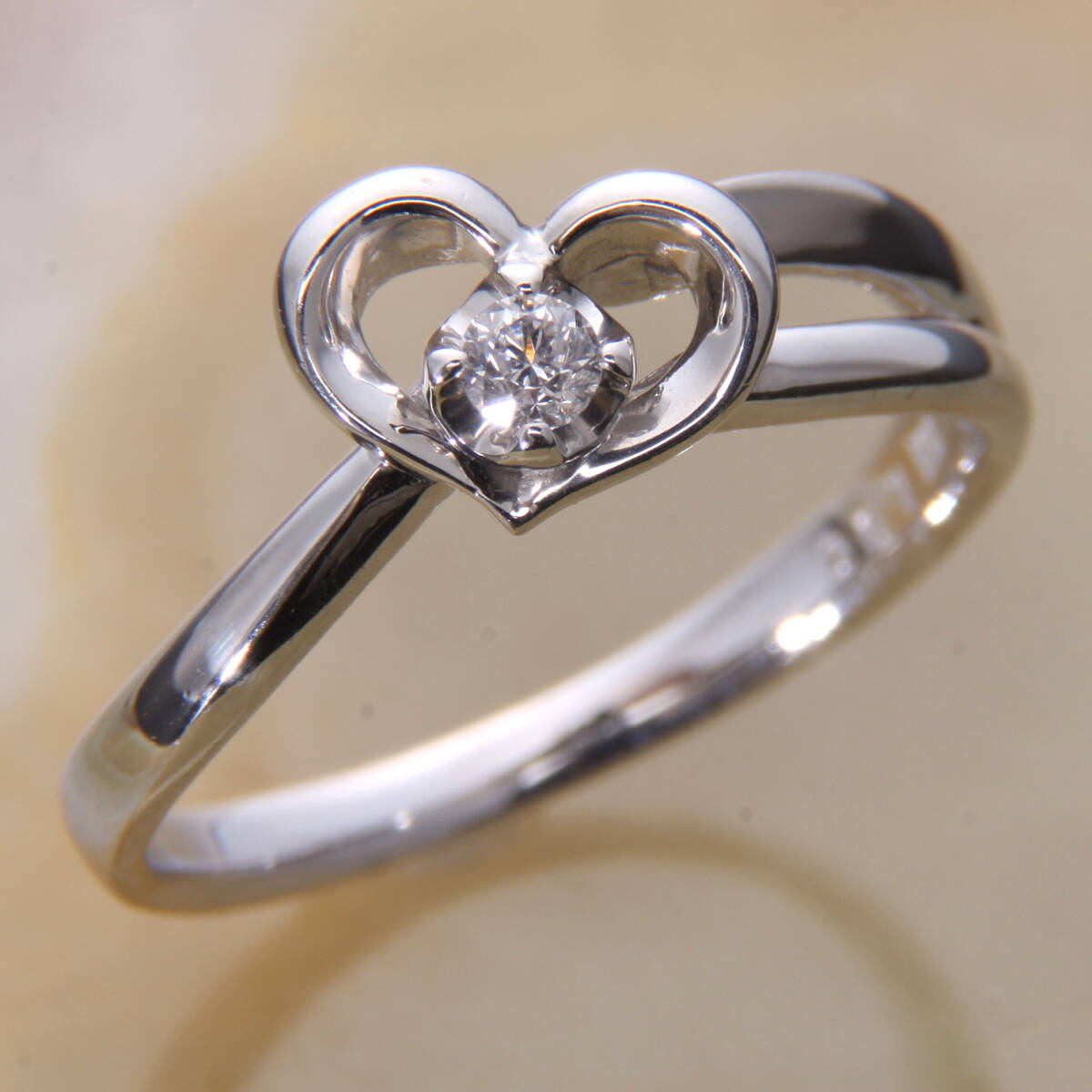 - ke9886◆K18WGリング ダイヤモンド ハート 11号