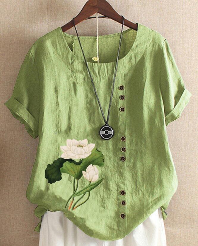 - 新品 人気推薦 /シャツ ブラウス トップス レディース チュニック 半袖 シャツ 花柄 トップス ゆったり 大きいサイズ リネン /43