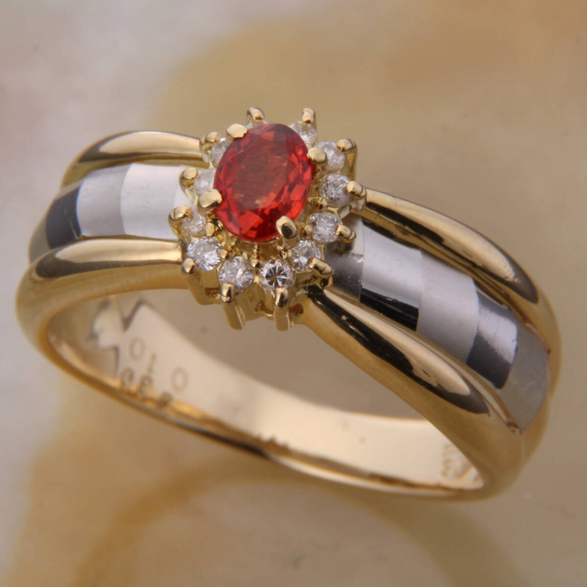 - ke9897◆K18/Pt900リング オレンジサファイア&ダイヤモンド 12号