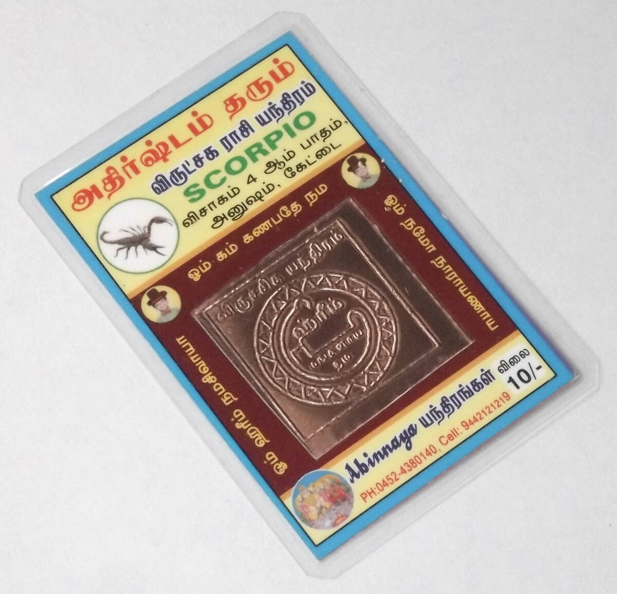 - 古い インド ヒンズー教 さそり座 お守り カード 星占い 占星術 ヒンドゥー教 神様 護符 呪符 曼荼羅 守護神 仏画 スコーピオン ラミネート