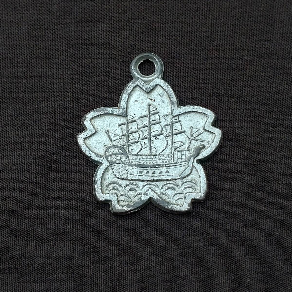 - 古い徽章 胸章 メダル 桜 舟 古物 骨董 レトロ 【5110】