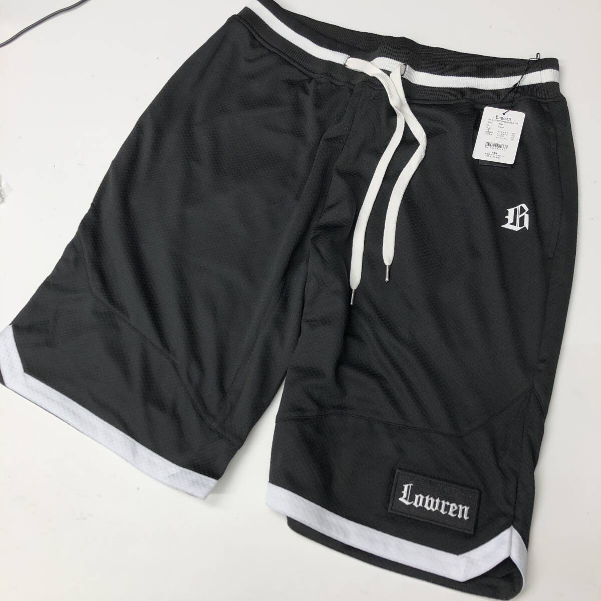 > 未使用 Lowren ローレン ハーフパンツ ロゴワッペン ブラック フィットネス 40(Lサイズ) ①