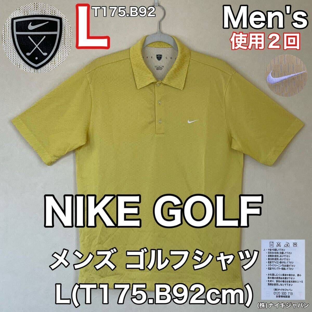 > 超美品 NIKE GOLF(ナイキ ゴルフ)メンズ ドライシャツ L(T175.B92cm)使用2回 イエロー 半袖 FIT DRY スポーツ アウトドア 株ナイキジャパン
