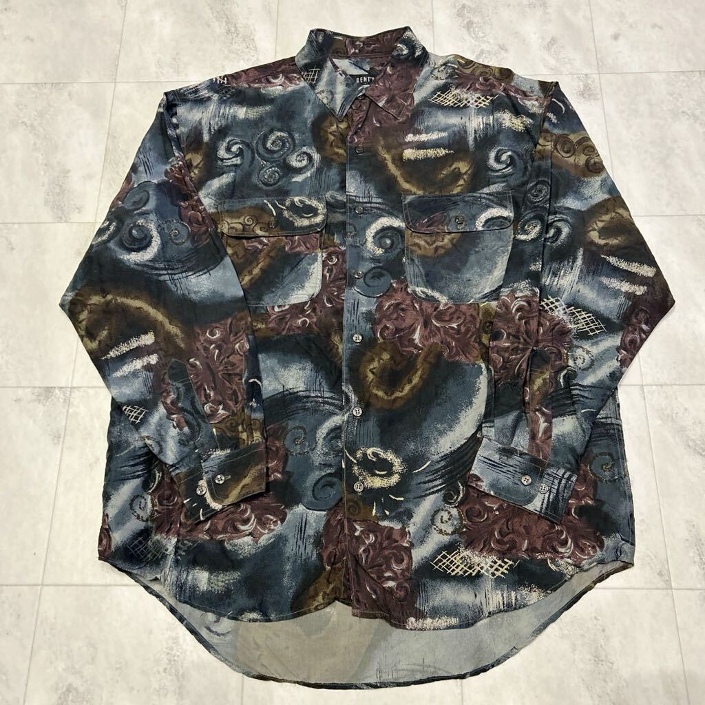 - GENT'S 総柄 柄シャツ シルク レトロ アート ビンテージ ダブルポケット 長袖シャツ 絹100%