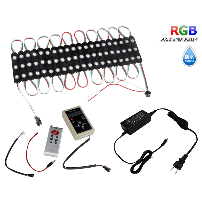 > LEDモジュール 流れる RGB 12V 黒ベース 防水 看板照明 間接照明 内照アクリル 20連×3 コントローラー 電源 セット