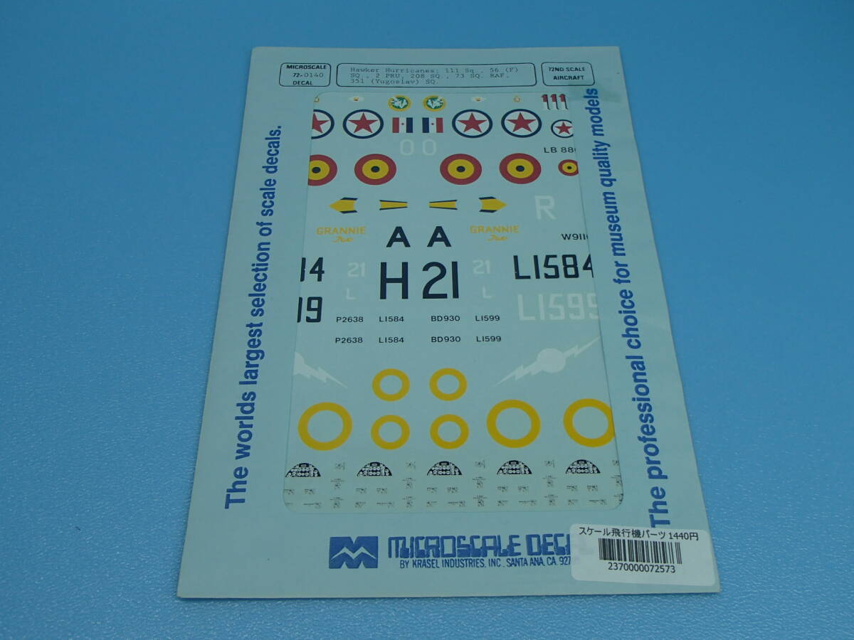 - マイクロスケール デカール 1/72 Hawker Hurricanes No.72-140