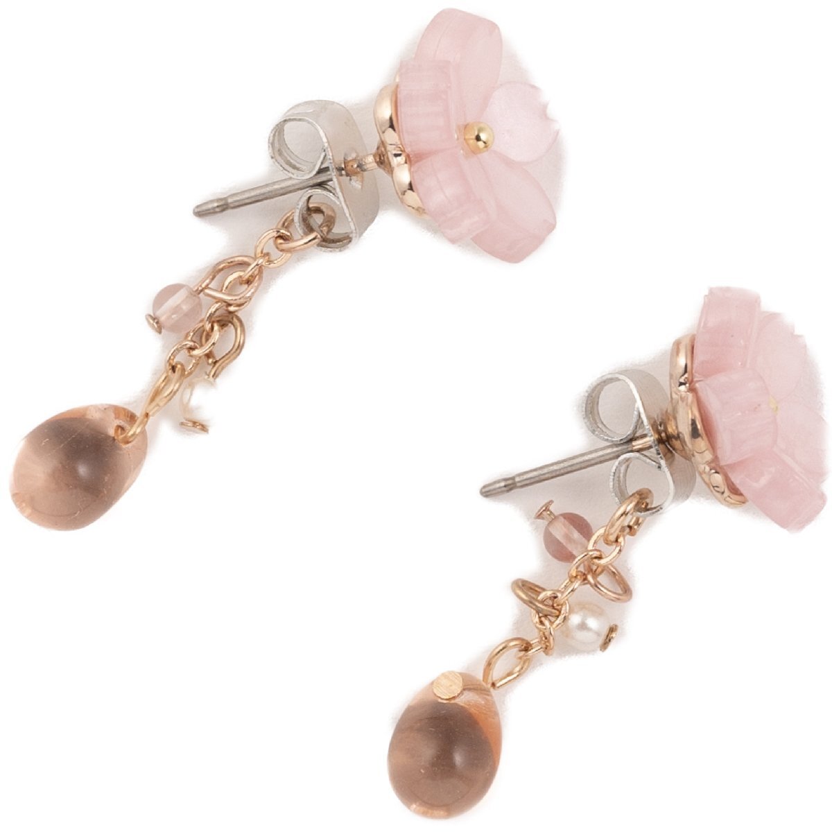 - 淡いピンクの桜をモチーフにした ピアス チタンポスト ニッケルフリー 24mm ピンク やわらかな桜色のビーズ