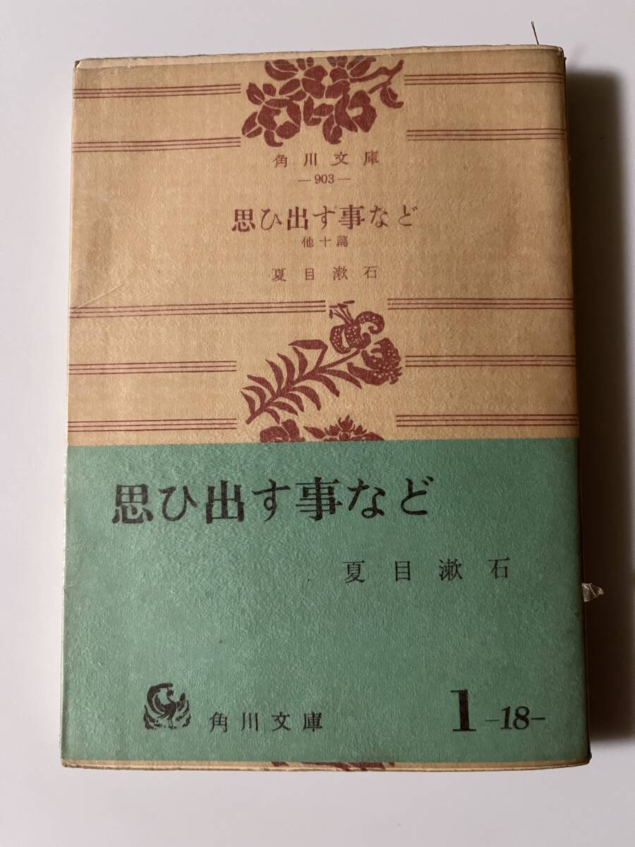 - 夏目漱石『思い出す事など 他十篇』(角川文庫、昭和31年、初版)。帯・元パラ付。242頁。