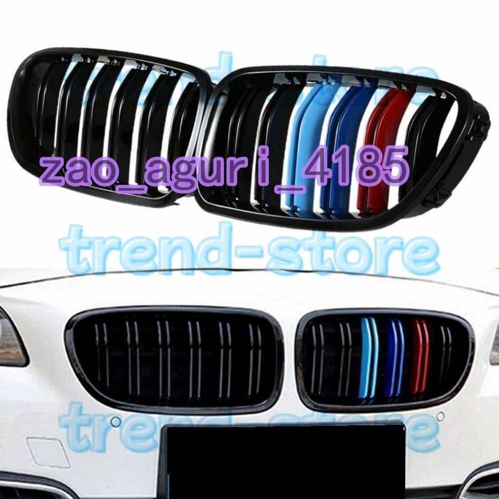 - BMW F10F11 フロント バンパー グリル Mスポーツ 黒 ブラック 艶あり 光沢 ダブルフィン Mカラー 左右 前期後期