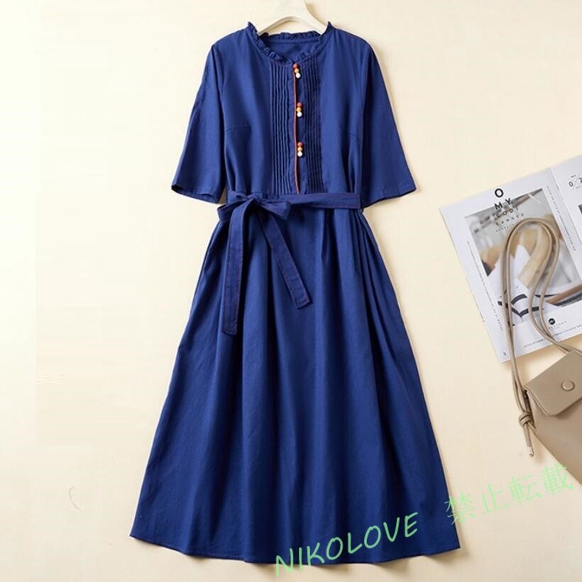 - 新品 夏マキシワンピース リネンワンピース ゆったり 通勤 綿麻 きれいめ 半袖 着心地がいい 大きいサイズ LG858