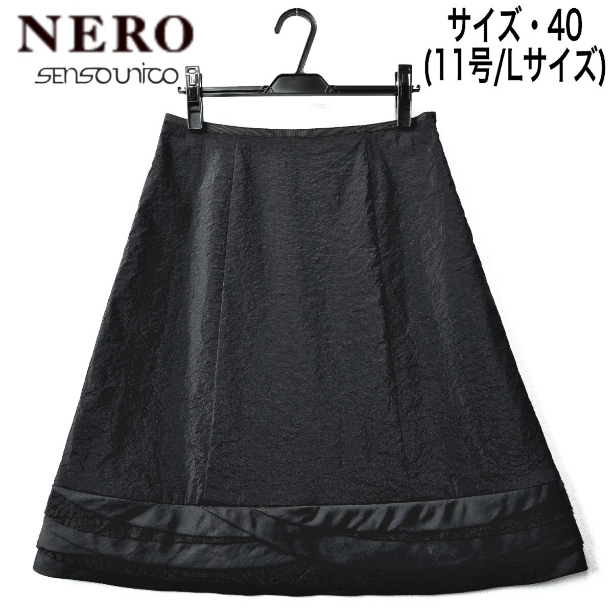 > 春夏/NERO センソユニコ/しわ加工タフタ デザイン スカート/40/黒【クリーニング済み】定価約3万円/11号