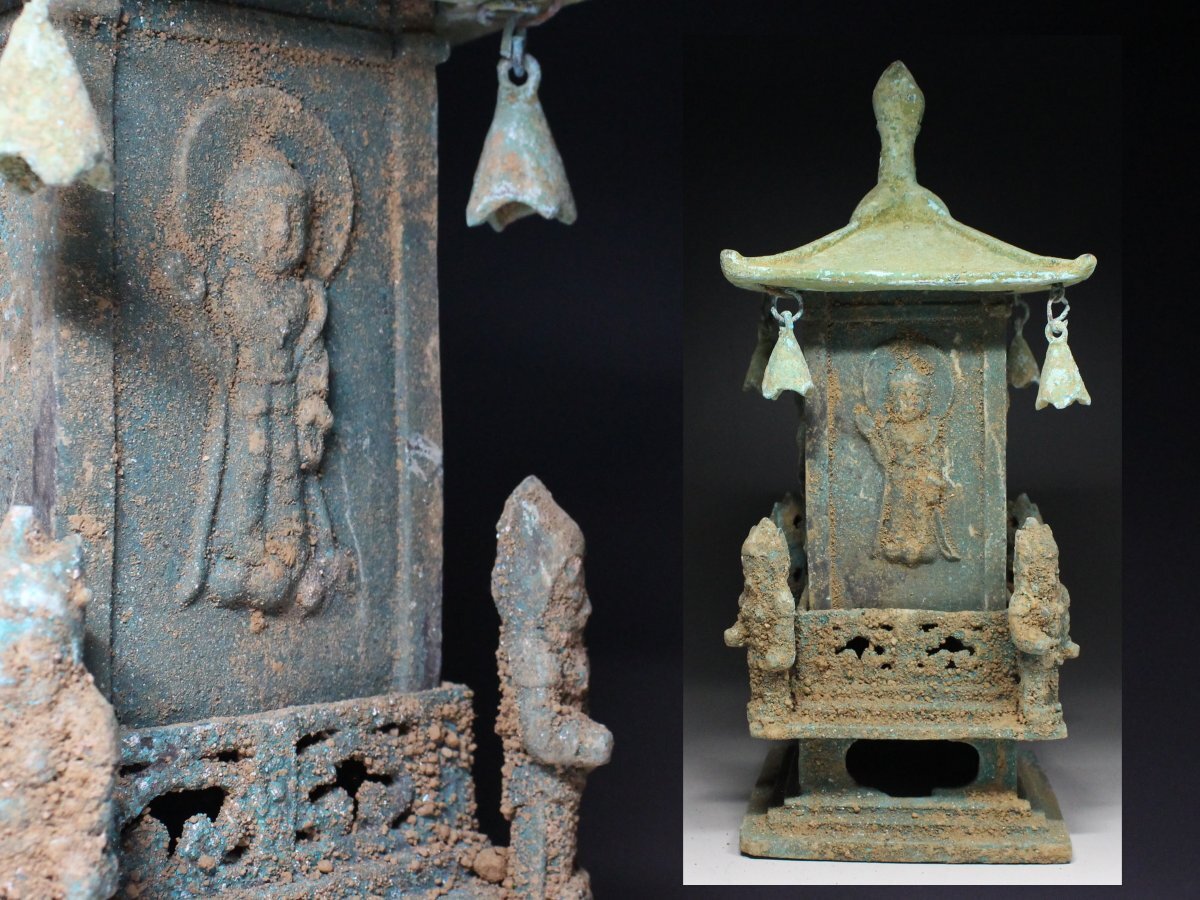 - ◆古銅・青銅・新羅・四天王・仏舎利塔・仏塔・五輪塔・舎利容器・仏教美術・高さ28㌢◆a2138h