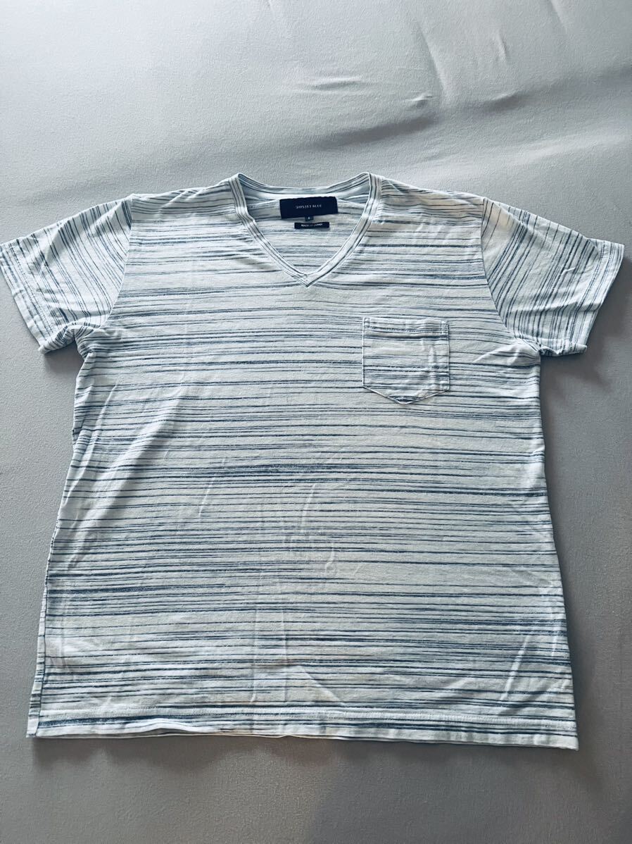 - 美品 SHIPS JET BLUE ボーダー Tシャツ S ポケットT