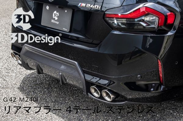- 3Dデザイン BMW G42 クーペ 2シリーズ M240i (2022y-) リア マフラー デュアル 4テール 90mm ステンレス 4101-34211 日本製 3DDesign