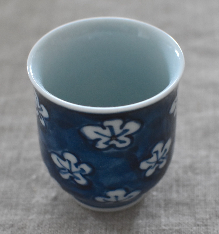- 源右衛門窯 小染風梅紋 お猪口 (未使用品)