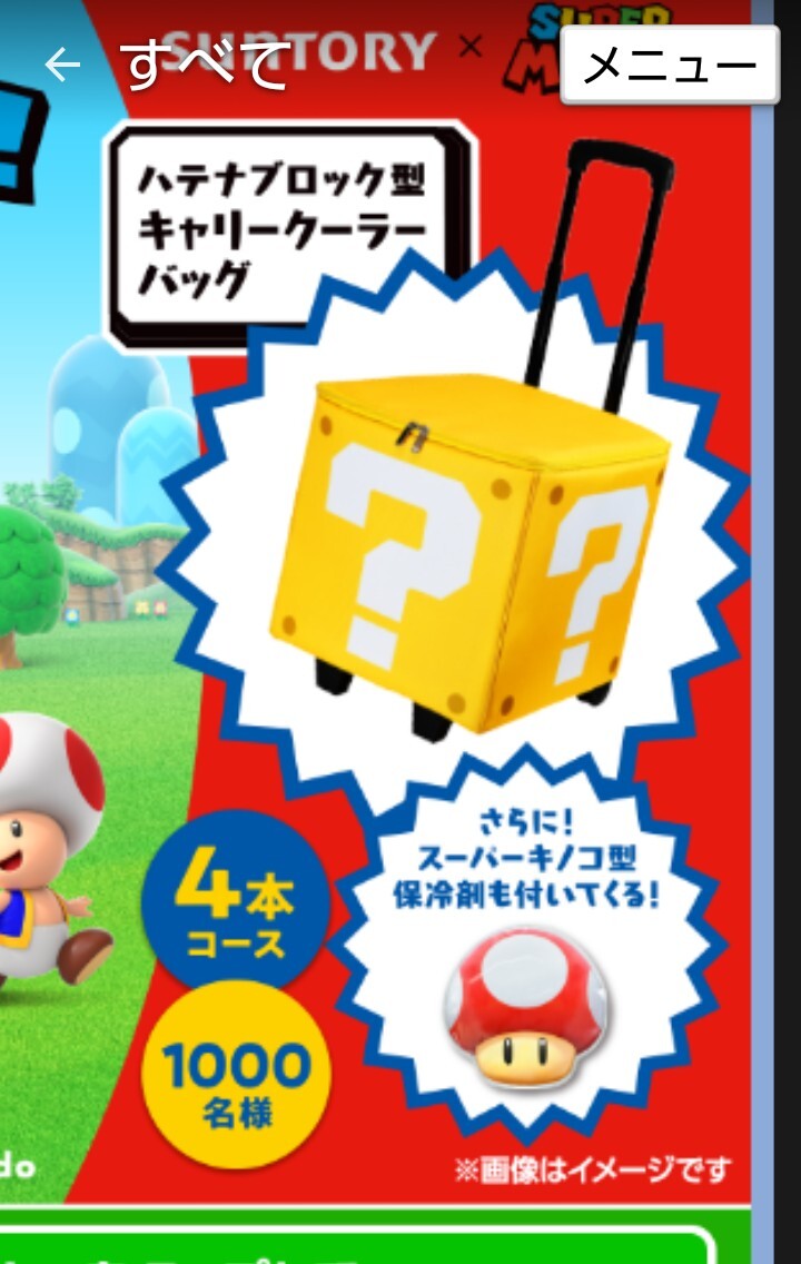 - 即決! 当選品 サントリー×スーパーマリオ ハテナブロック型 キャリー付クーラーバッグ(スーパーキノコ保冷剤付)&クリアファイル
