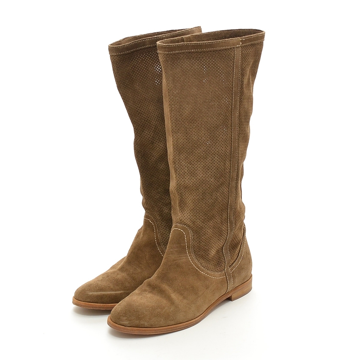 - □442030 theory セオリー ○パンチングレザーロングブーツ サイズ37/23.5cm レディース イタリア製 ブラウン 無地