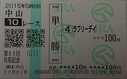 - 単勝馬券 2015年 有馬記念 ラブリーデイ、リアファル
