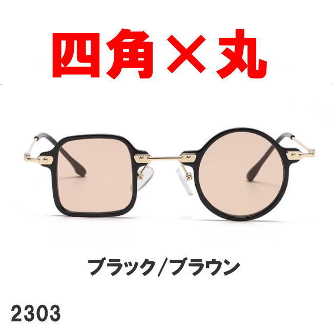 - ブラック/ブラウン 2303 非対称 サングラス 丸四角 □〇伊達メガネ メンズ レディース