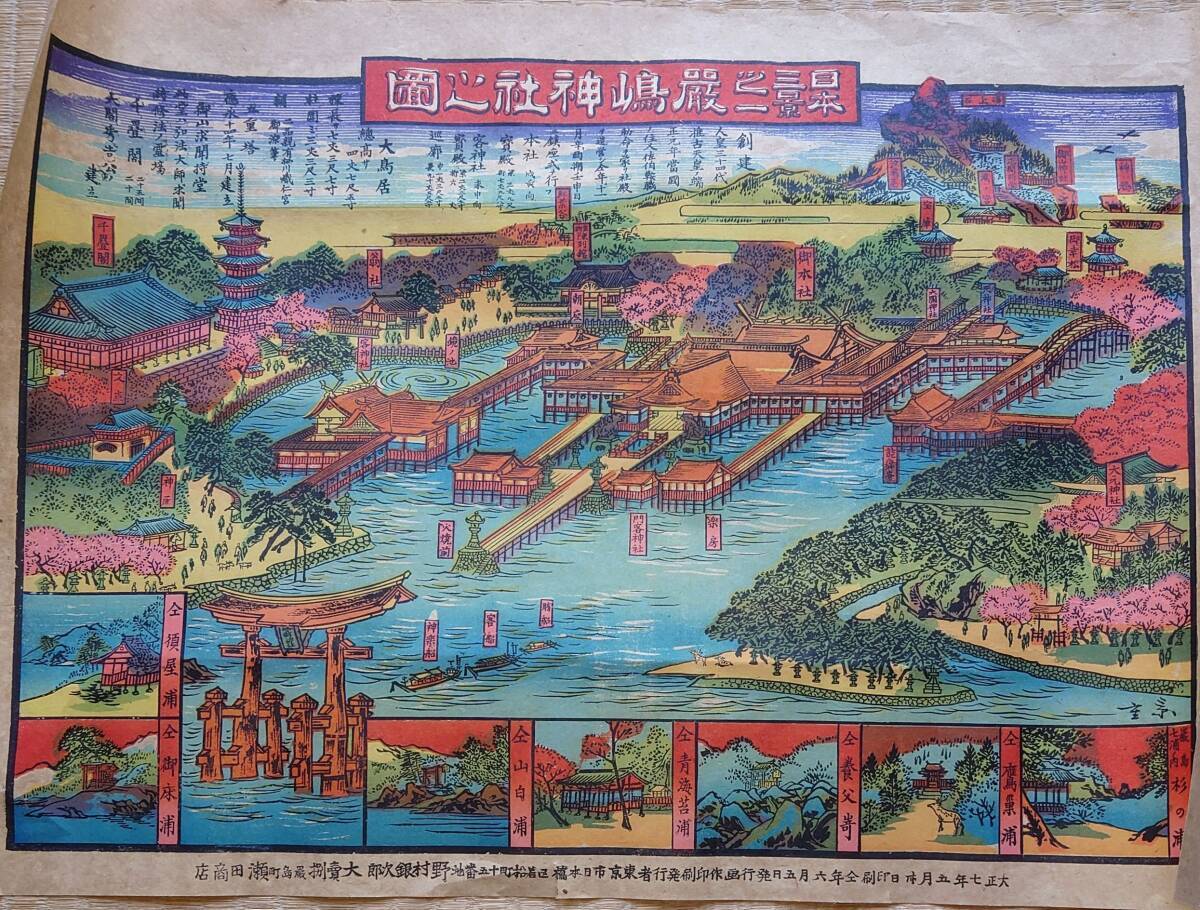 - f24060808〇彩色石版図 日本三景厳島神社之図 大正7年〇和本古書古文書